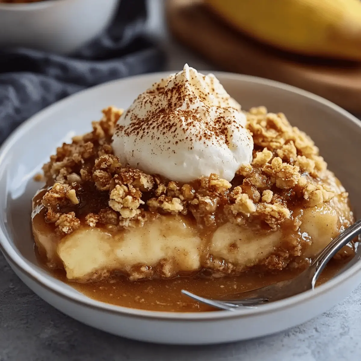 Whipped Cream: Light and airy, it adds a lovely contrast to the crispy topping, enhancing the dessert's overall appeal and richness.