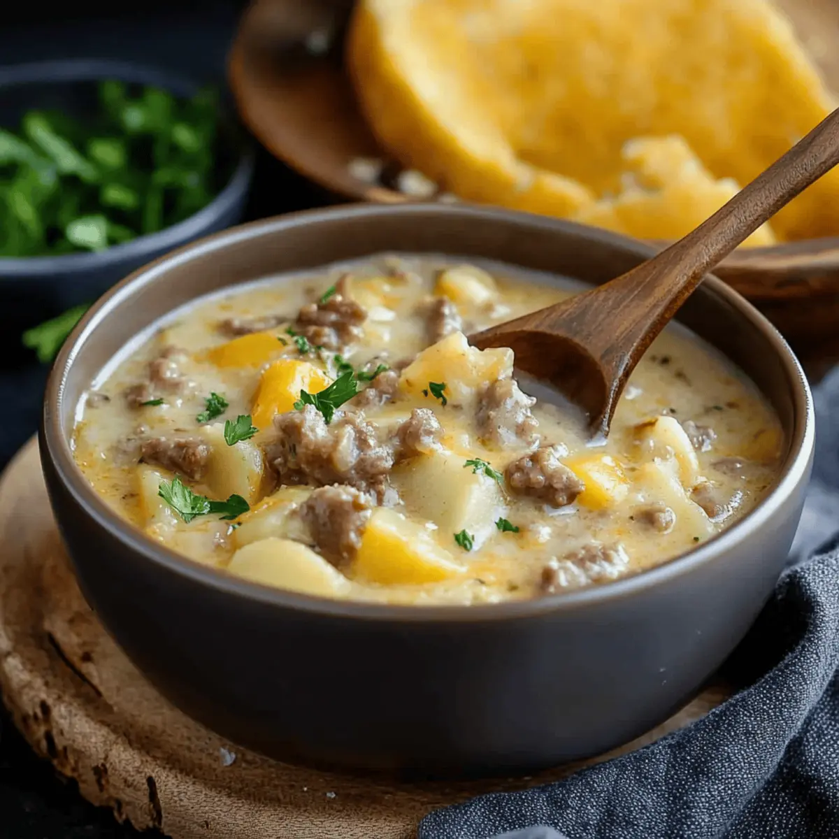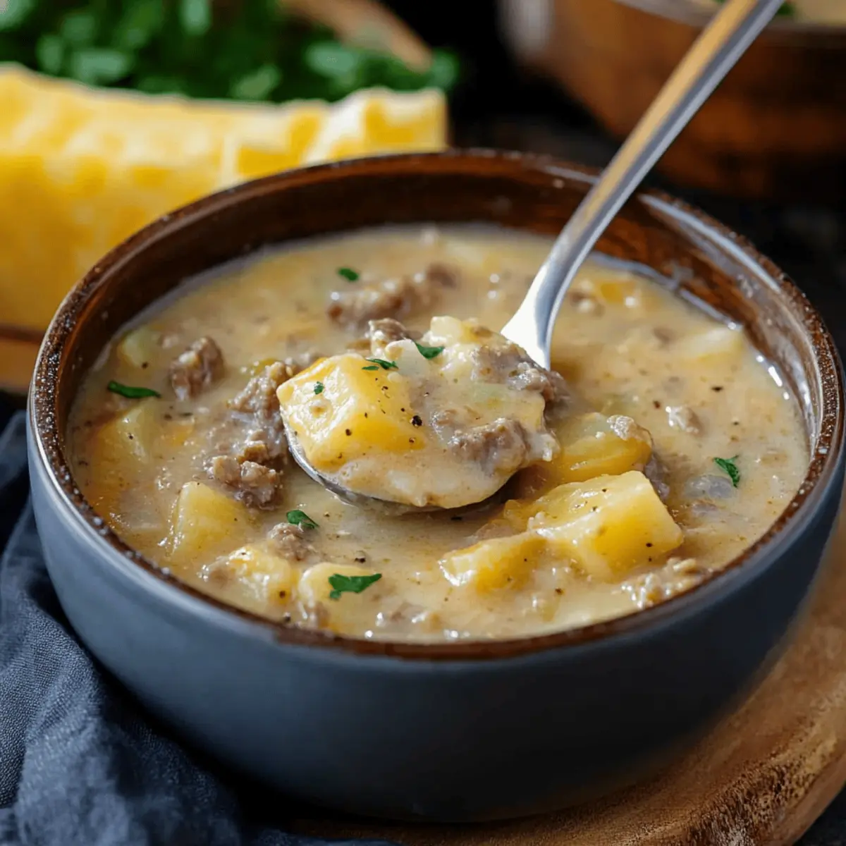 Cozy Up with Cheesy Beef and Potato Soup Delight