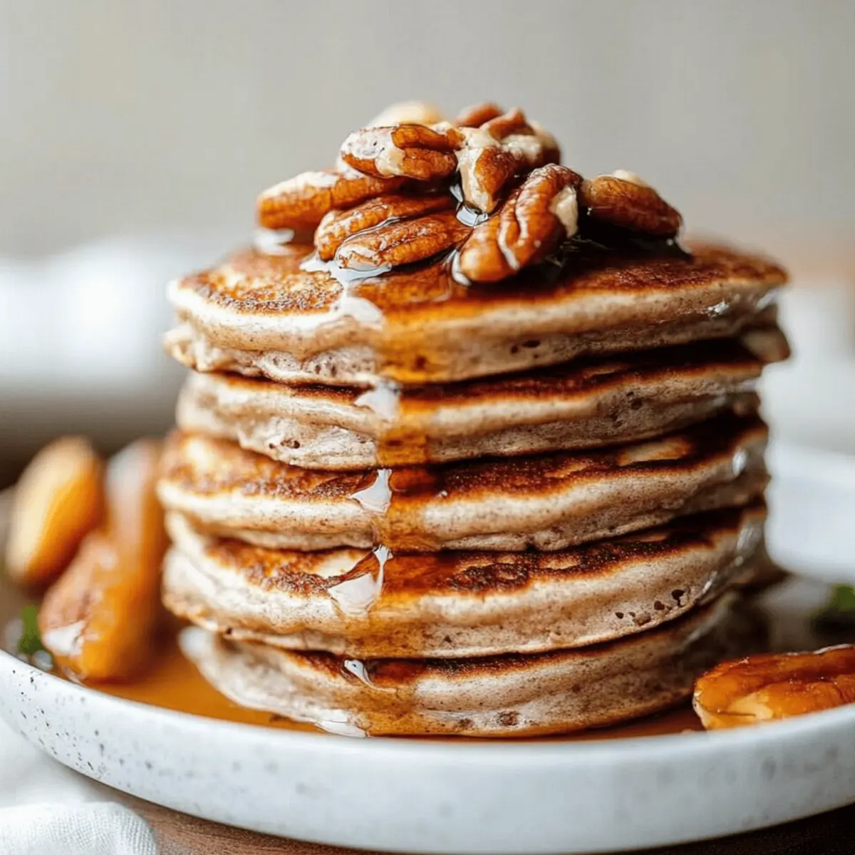 Spiced Apple: Fold in small chunks of fresh apple or shredded zucchini for a cozy spin on flavors. This adds moisture and a hint of sweetness that balances perfectly with the pecans, making each pancake an autumnal delight.