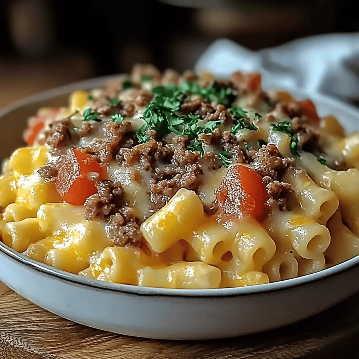 Comfort Food Reinvented: It's not just pasta; it’s a hearty blend of your favorite cheeseburger elements in one comforting bowl.