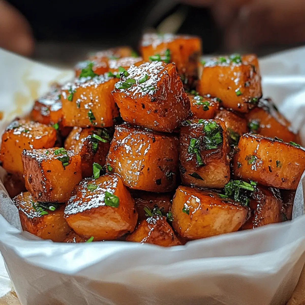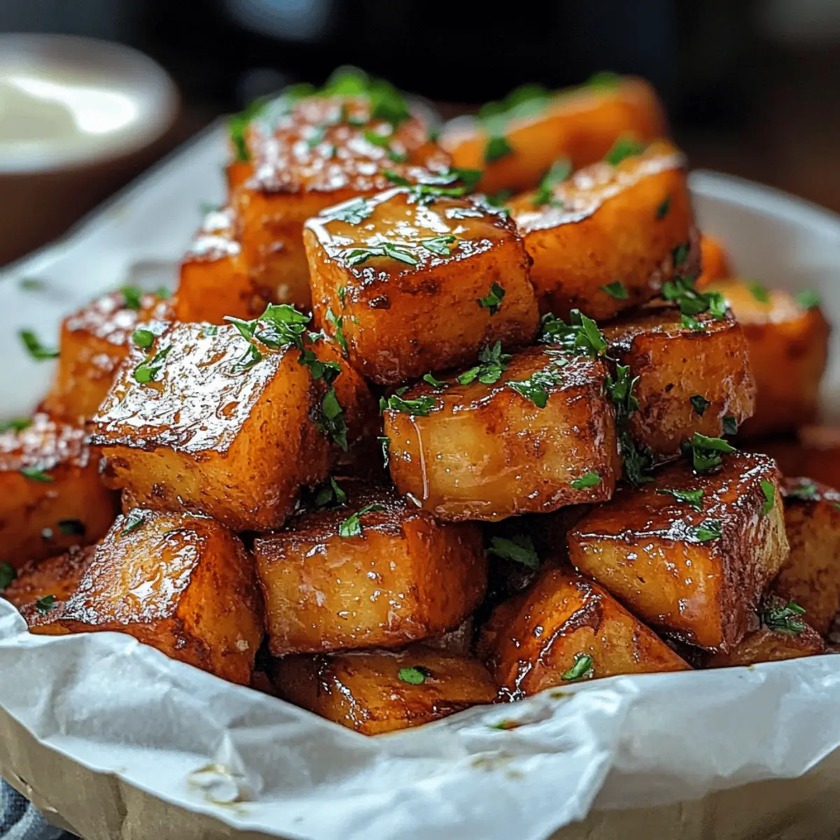 Fresh Garnish: A sprinkle of freshly chopped parsley not only adds color but also a hint of freshness that beautifully complements the roasted sweet potatoes with cinnamon & honey.