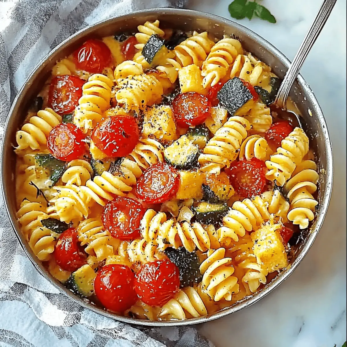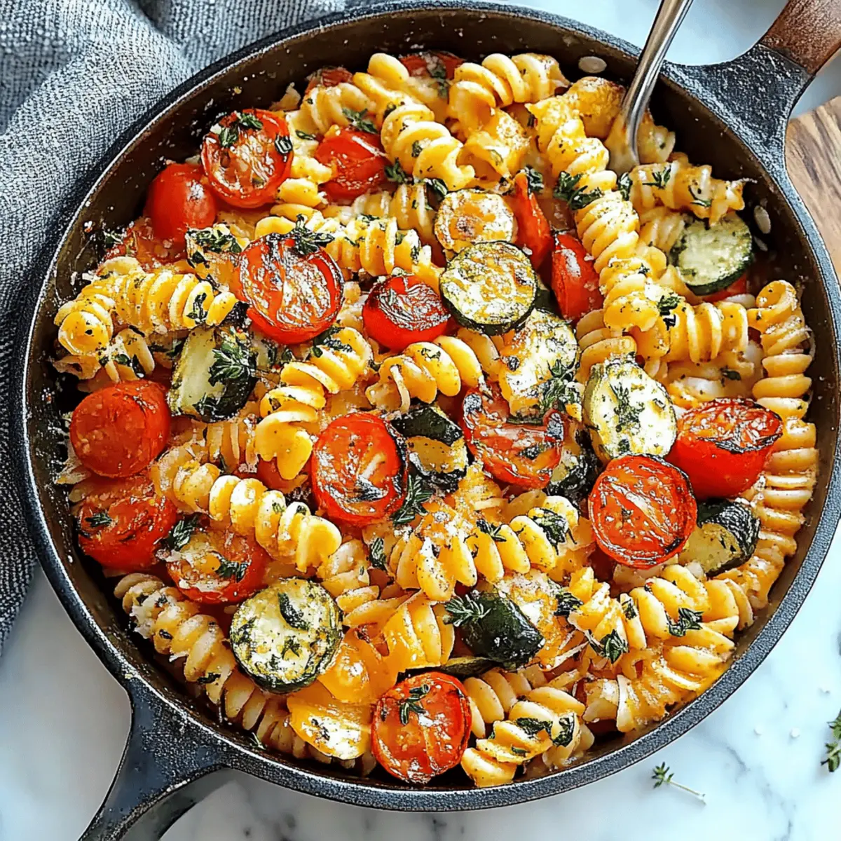Simplicity, this recipe comes together in just 20 minutes—perfect for those busy weeknights when you still want a home-cooked meal. Fresh Ingredients shine through with garden-fresh zucchini and sweet cherry tomatoes, making every bite a celebration of summer. Flexibility is key; swap in your favorite pasta shape or any seasonal veggies you have on hand for a personal touch. Flavorful Seasonings elevate this dish to ensure it never feels boring and is always satisfying, whether you’re dining alone or hosting friends. Healthy and Wholesome, it offers a balanced meal packed with nutrients, making it a guilt-free option for any dinner table. Don’t miss out on serving it alongside a refreshing lemon vinaigrette salad or warm crusty garlic bread for a complete experience!