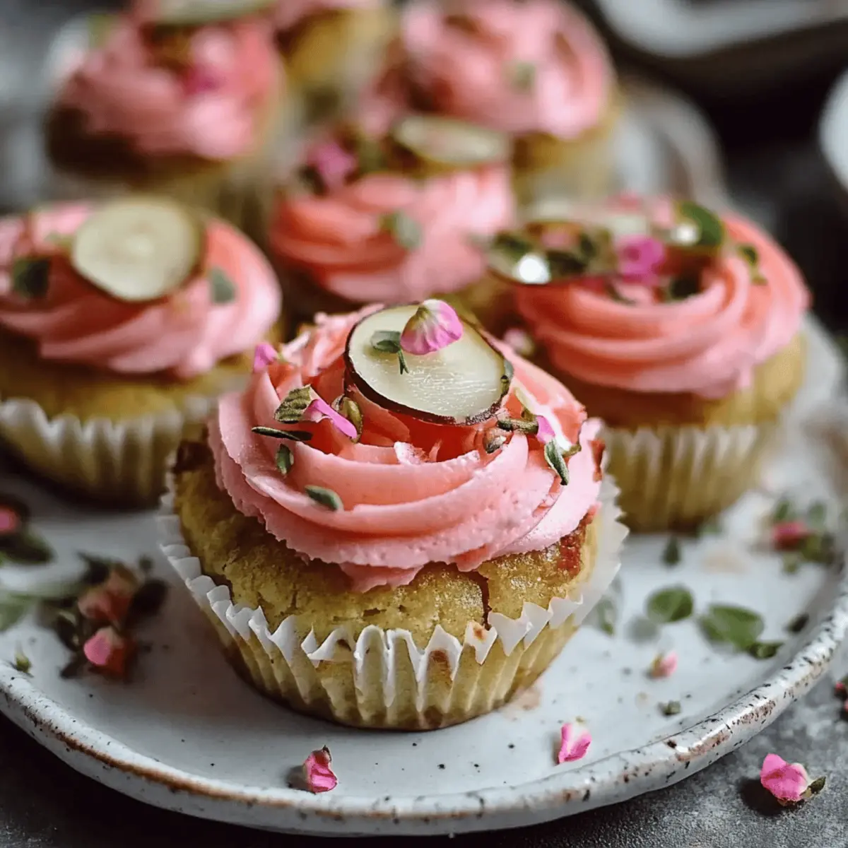 Once the cupcakes are completely cool, generously frost each with the rose buttercream using a spatula or piping bag for added flair. This step adds a touch of elegance and a delightful flavor twist. If desired, sprinkle some additional ground pistachios on top for an extra crunch and visual appeal.