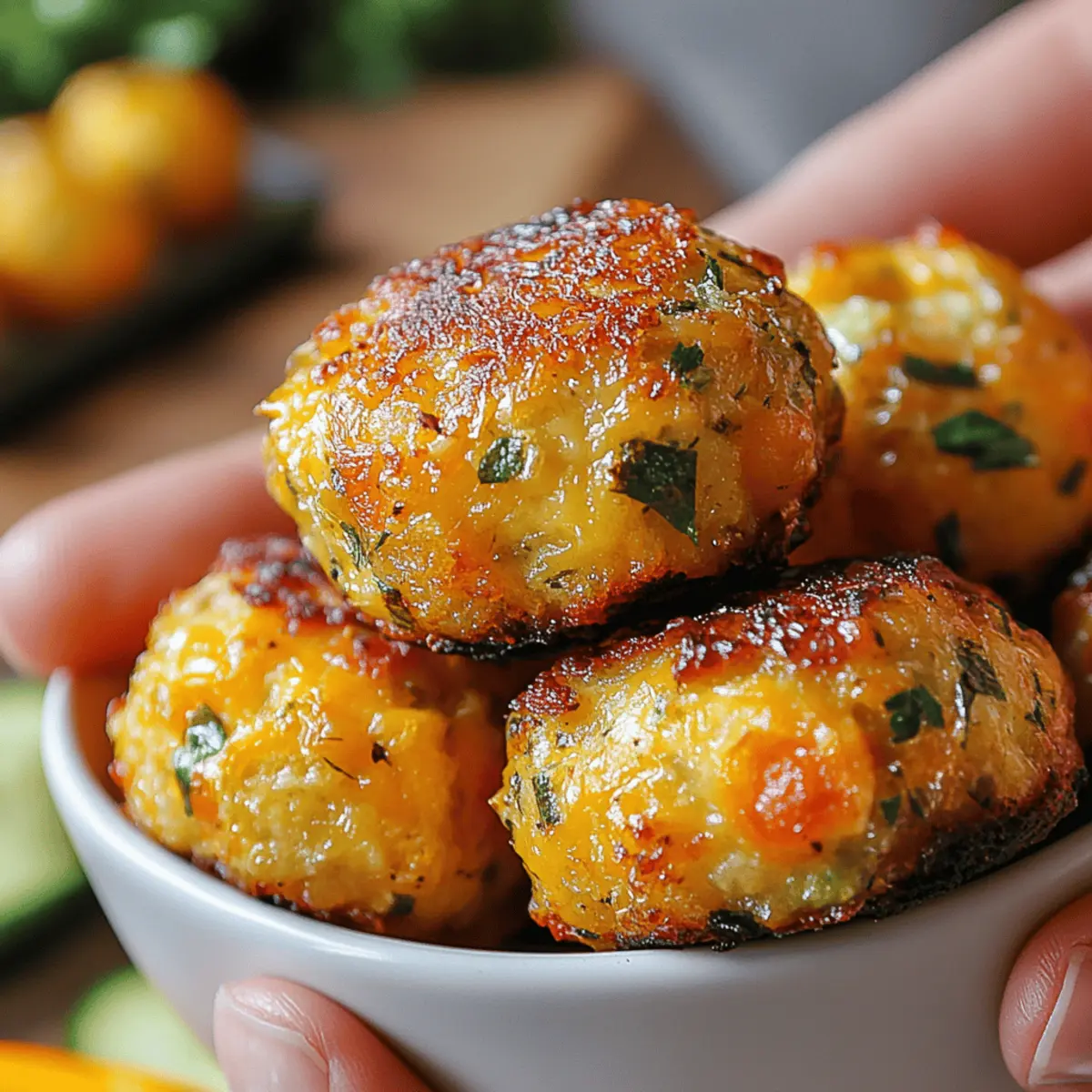 Very good question! Store your cooked zucchini tots in an airtight container in the refrigerator for up to 3 days. To keep them crisp, reheat them in the oven at 375°F (190°C) for about 10 minutes. This method helps maintain their delightful crunch, rather than making them soggy in the microwave.